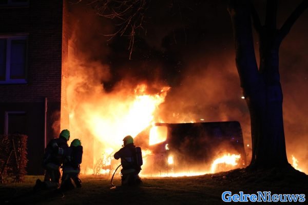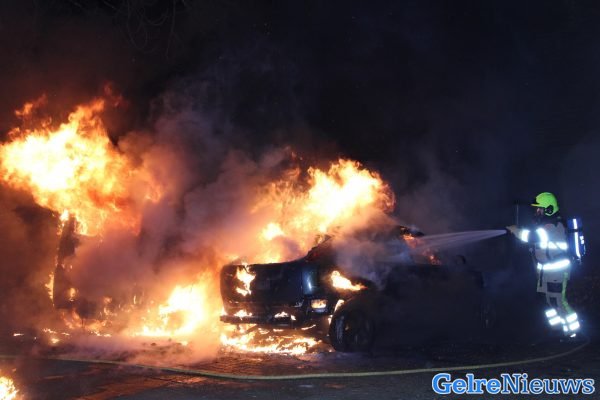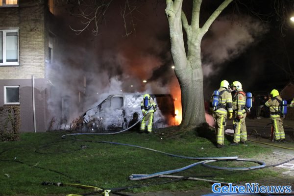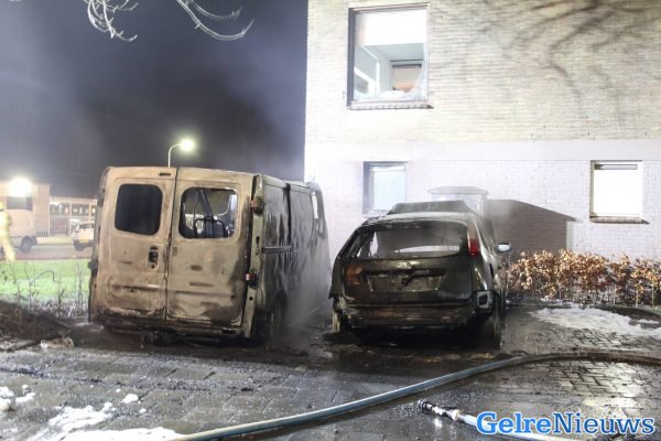 Bij aankomst bleek het te gaan om een bestelbus en een personenvoertuig die volledig in lichterlaaie stonden tegen de zijkant van een flat. Door de hitte sprong een ruit van een woning van de eerste etage. De brandweer kwam ter plaatse met 2 voertuigen om de vlammen te bestrijden.
