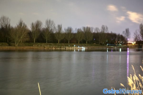 Het dier reageerde iets voor 23:00 uur niet meer op aanroepen van zijn baasje. Deze belde de brandweer en zij zijn momenteel aan het zoeken rond het water.