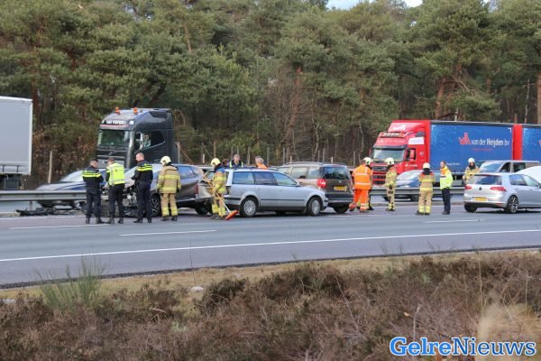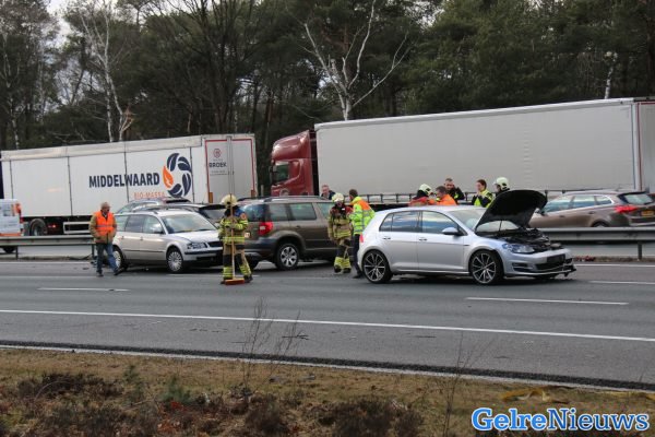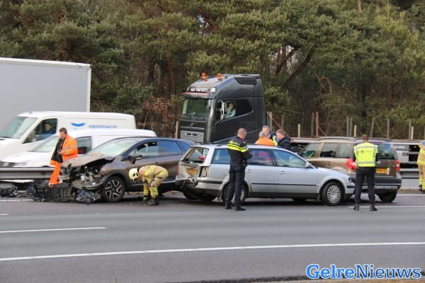 Door nog onbekende oorzaak kwamen de auto’s met elkaar in botsing. De brandweer, twee ambulances en onder andere Rijkswaterstaat rukten uit. Ter plaatse bleken de verwondingen mee te vallen en was er geen sprake van een beknelling.