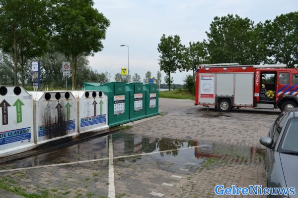 Toen de brandweer ter plaatse kwam bleek de middelste glasbak van de 3 in de brand te staan. Er kwam flink wat rook uit de glasbak. De brandweer heeft besloten om de glasbak vol met water te laten lopen. Tijdens het blussen kwam er ook redelijk wat rook vrij. De glasbak is aan de buitenkant zwart uitgeslagen door de neergedaalde rook.