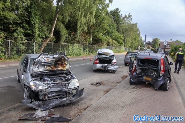 De bestuurder van de auto, een man, raakte bij de klap gewond is met onbekende verwondingen naar het ziekenhuis vervoerd. Alle drie de auto’s zijn total loss en afgesleept door een berger.