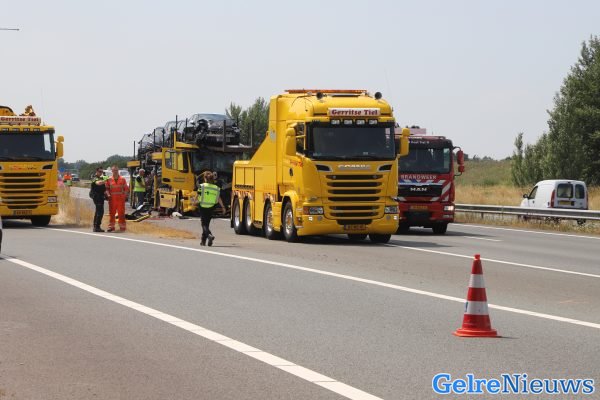 Rond 13:35 uur werd het ongeval gemeld, waarna enkele minuten later werd opgeschaald naar middel hulpverlening. Hierbij komen extra hulpverleningsvoertuigen ter plaatse. De traumahelikopter en drie ambulances zijn ter plaatse. Het zou gaan om een ongeval waarbij een vrachtwagen achterop een andere vrachtwagen is gereden. Tenminste één vrachtwagenchauffeur zit bekneld in zijn voertuig en zou gewond zijn geraakt. Hoe ernstig hij gewond is, is nog niet bekend. In totaal zijn twee personen met de ambulance afgevoerd naar het ziekenhuis.