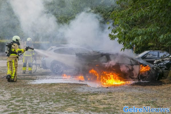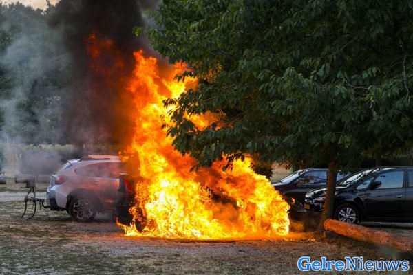 Één auto op een parkeerplaats is gaan branden en stond in korte tijd in lichterlaaie. De rookwolken waren flink zichtbaar en de vlammen sloegen er hoog vanaf. De brandweer had de nodige moeite met het blussen, omdat de brandstoftank is gaan lekken en het vuur verspreidde over de grond. Daarna zijn ze gestart met te blussen met schuim.