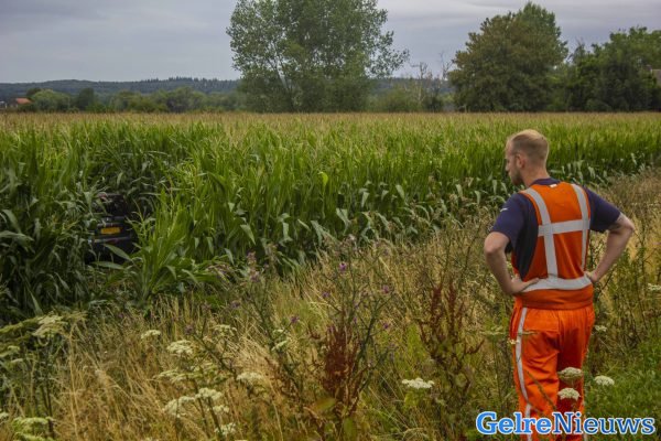 De man is gewond geraakt en per ambulance met spoed overgebracht naar het ziekenhuis. De politie heeft de eigenaar van het maïsveld geïnformeerd en geholpen met het bergen van het voertuig.