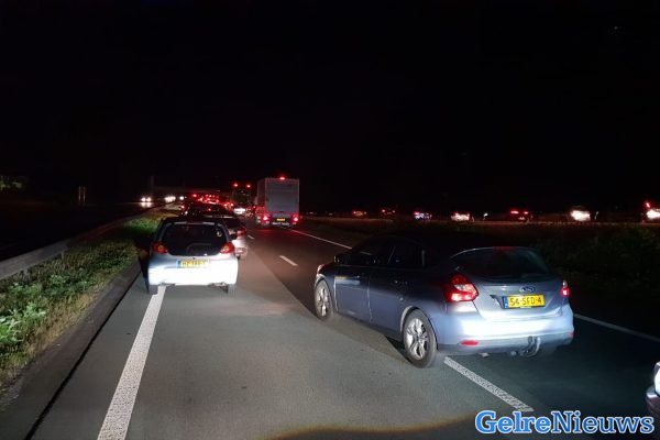 ELST – De snelweg A325 in de richting van Nijmegen is in de nacht van zondag op maandag bijna een uur lang volledig afgesloten geweest na een kettingbotsing bij Elst.