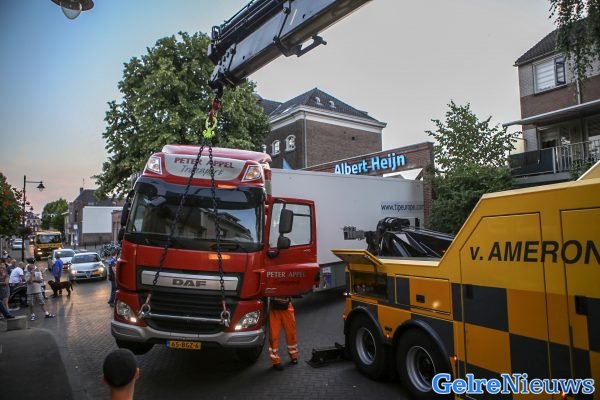 De vrachtwagen wilde zijn lading lossen bij de Albert Heijn. De chauffeur van de vrachtwagen had weinig ruimte en kon de vrachtwagen er niet zo insteken zonder veel schade te maken. Hij koos er voor om een bergingsbedrijf hem te laten helpen.