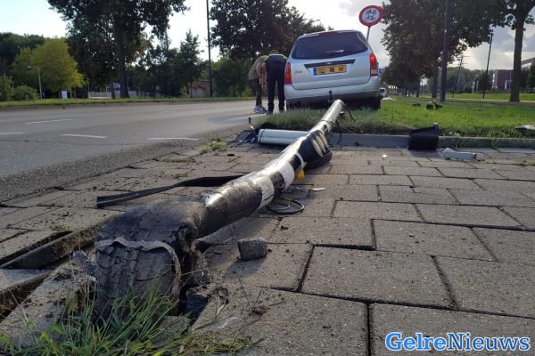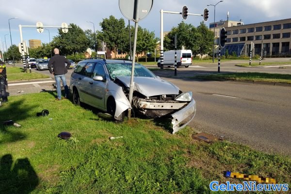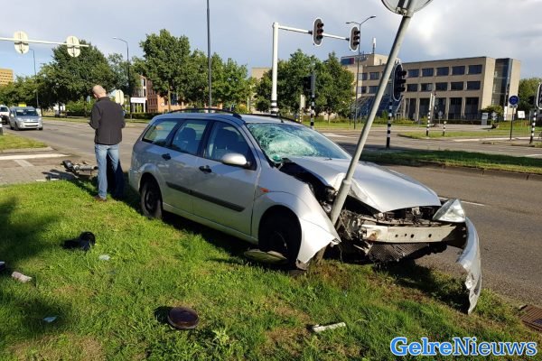 NIJMEGEN – Op de Wijchenseweg in Nijmegen is zaterdagavond een auto afgesneden. De auto botste hierdoor tegen een verkeerslicht, die uit de grond werd gereden.