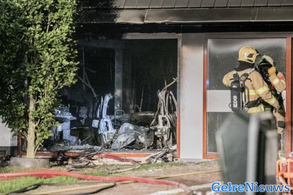 Hulpdiensten zijn massaal ter plaatse gekomen. De auto is naar binnen gegaan via de hoofdingang. Dit stuk van het gebouw is verwoest door de brand. In de auto lagen meerdere gasflessen, waarvan er één is geëxplodeerd.