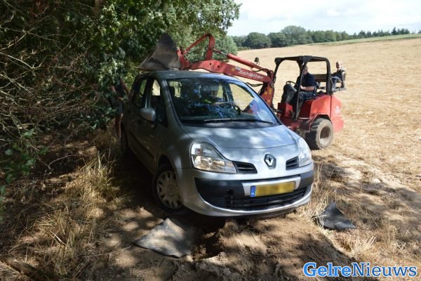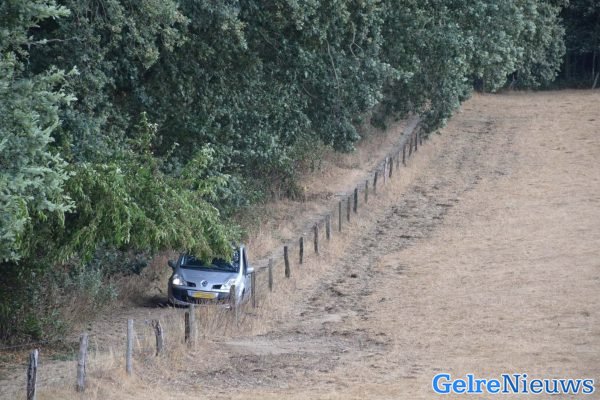 Toen bestuurder erachter kwam dat hij niet meer verder kon rijden is hij uitgestapt en kwam tot val in het prikkeldraad. Omstanders zagen de man en hebben 112 gebeld.