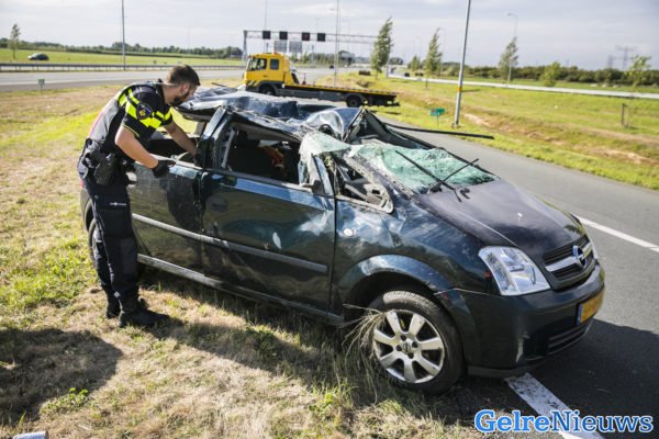 Auto over de kop bij ongeval bij knooppunt Valburg