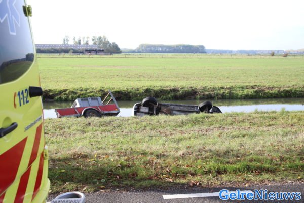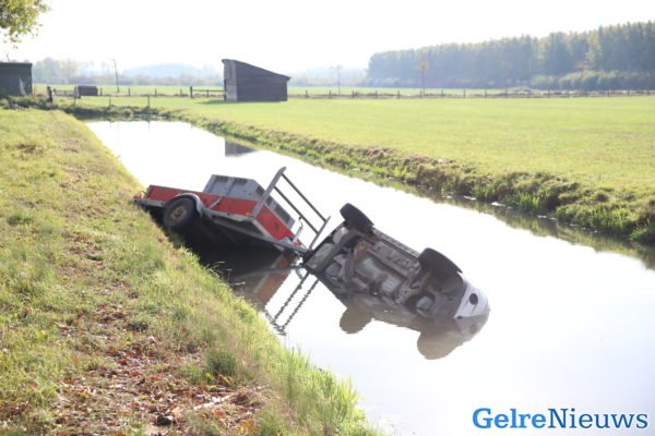 Bij aankomst van de hulpdiensten bleek een auto met aanhanger in het buitengebied van de weg te zijn geraakt en in de naastgelegen sloot te liggen. Hoe dit kon gebeuren, is niet duidelijk geworden.