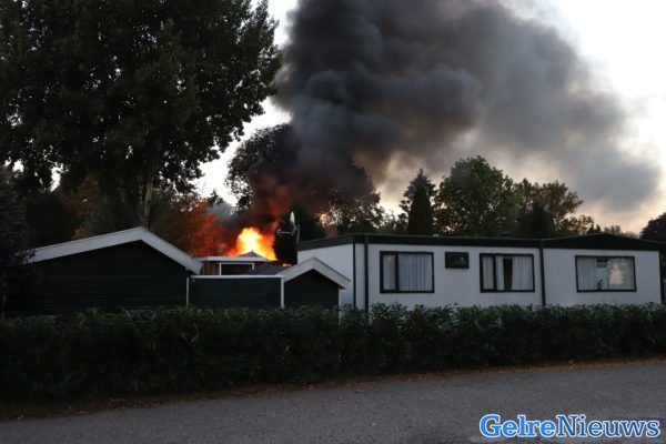 Chalet tot de grond toe afgebrand op camping: grote rookwolken zichtbaar