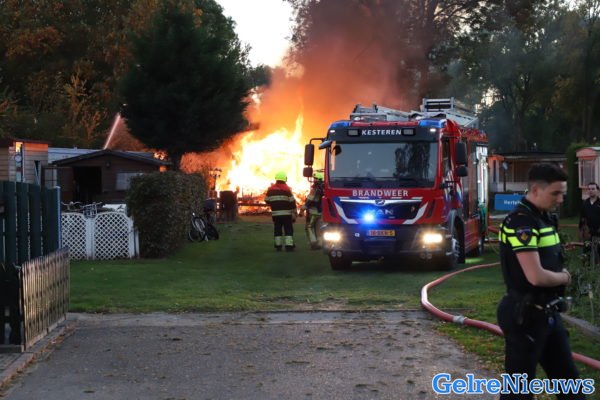 KESTEREN – Op camping Betuwe aan de Hoge Dijkseweg in Kesteren is woensdagavond een chalet afgebrand. Bij de brand raakte niemand gewond, maar de schade is enorm.