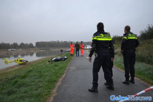 Traumahelikopter geland bij ernstig ongeval tussen twee scooters op dijk