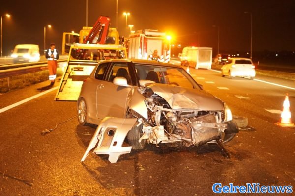 EWIJK – Een automobilist is in de nacht van maandag op dinsdag uit de bocht gevlogen, een lantaarnpaal geramd en vervolgens tegen een andere auto en een vrachtwagen gebotst. Het ongeluk gebeurde bij knooppunt Ewijk.