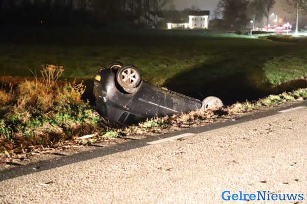LIENDEN – Zaterdagavond omstreeks 18:55 uur kregen de hulpdiensten een melding van ongeval op Vogelenzangseweg in Lienden. Een auto kwam op zijn kop in een natte sloot terecht.