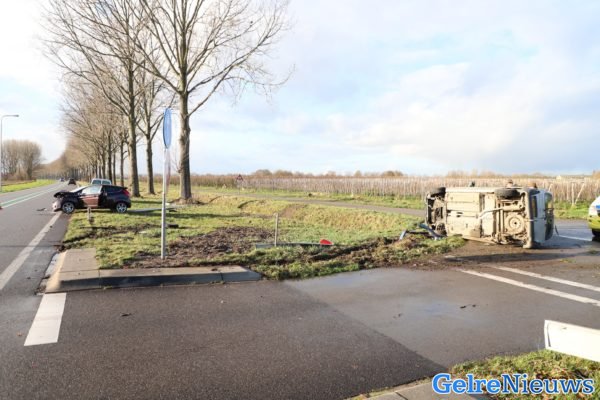 Een klein wit bestelbusje wilde oversteken en heeft waarschijnlijk de personenauto op de N320 over het hoofd gezien. Hierdoor belandde het busje op zij zijkant aan de andere kant de weg, ook nam hij nog een snelheidsbord mee. De personenauto ramde nog een lantaarnpaal uit de grond.