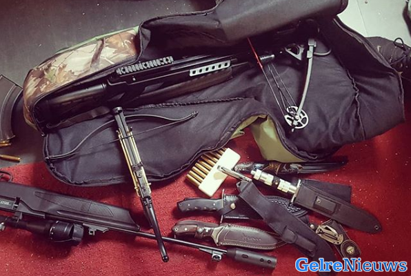 De politie was door mensen geattendeerd dat deze bewoner van de benedenstad wel heel erg geïnteresseerd was in wapens. Op de foto is een deel te zien van wat de politie op zijn zolderkamer heeft aangetroffen. Omdat de politie niet precies wist wat wel en niet toegestaan is hebben zij alles meegenomen naar het bureau voor nader onderzoek.