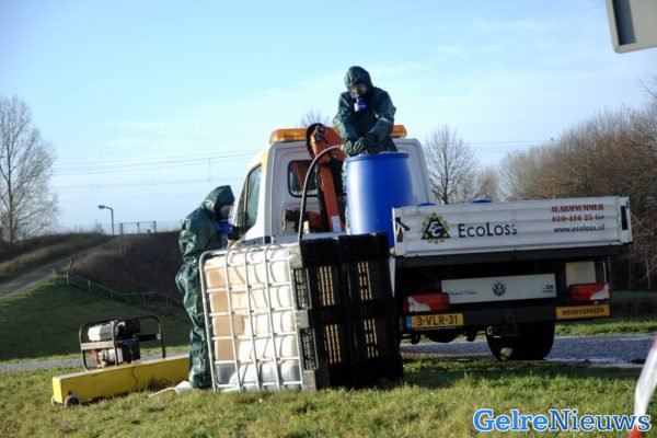De milieu omgeving‘s dienst van de provincie heeft een aantal gespecialiseerde bedrijven ingeschakeld. Een bedrijf haalt de restanten afval uit het vat en een ander bedrijf zuigt de overgebleven chemicaliën van de grond. De chemische vloeistof is langs het wegdek tientallen meters ver weggestroomd.