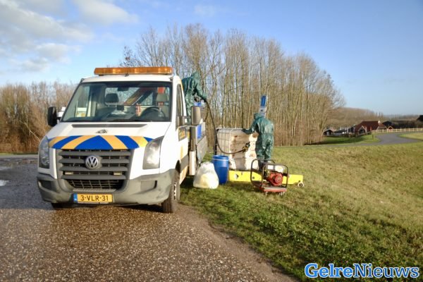 ARNHEM – Vanmorgen werd door een passant rond 05.00 uur een IBC tank met vloeistof aangetroffen op de Schaapdijk.