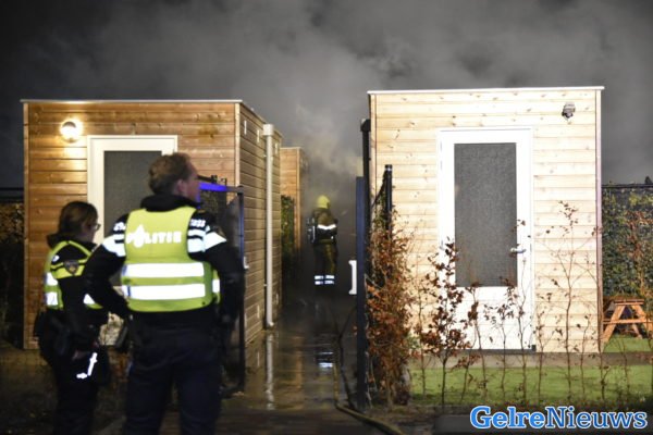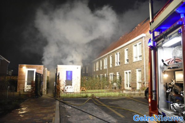 Het schuurtje aan de Pablo Nerudastraat in Nijmegen stond in lichterlaaie, de vlammen sloegen er vanaf. De schuur liep veel schade op.