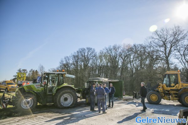 De boer heeft zelf de kalk merendeels opgeruimd. Met een speciale machine wordt de restanten weggehaald. Zowel de tractor als de aanhanger hebben schade opgelopen.