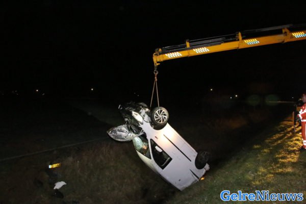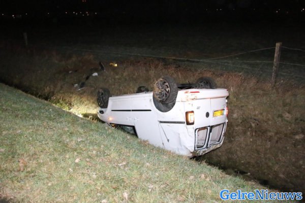 Auto op de kop in de sloot bij Lathum, bestuurder aangehouden