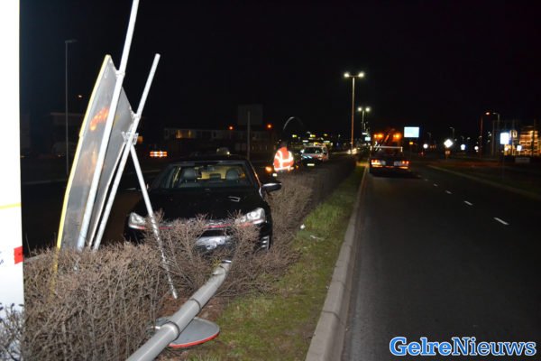 NIJMEGEN – Op de Verlengde Energieweg is donderdagavond een auto tegen verkeersbord en lantaarnpaal gereden na een inhaalactie.