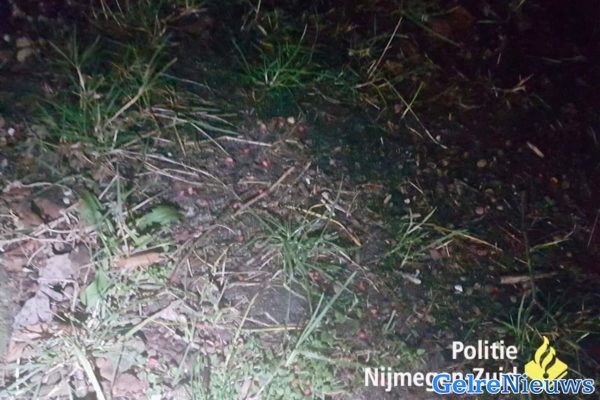 Dit is gebeurd op de Vossendijk / Oostkanaaldijk te Nijmegen ter hoogte van de roeivereniging. Pas op als u daar de hond gaat uitlaten. Volgens de melder lag het op meerdere plaatsen verspreid achter de bomen. De politie doet verder onderzoek naar de situatie.