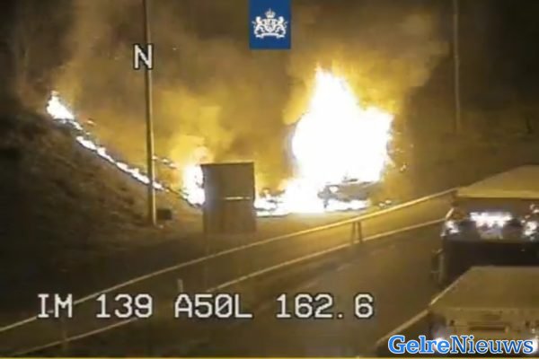 Rijkswaterstaat meldde op Twitter dat er een flinke brand was. Een auto stond op de afrit bij Renkum in lichterlaaie. De snelweg was tijdelijk afgesloten in de richting van Nijmegen.