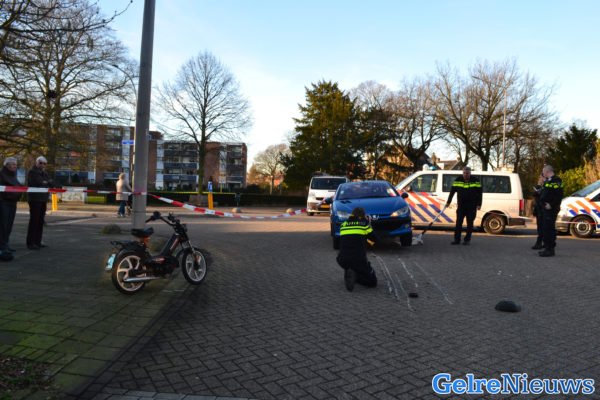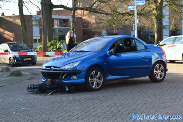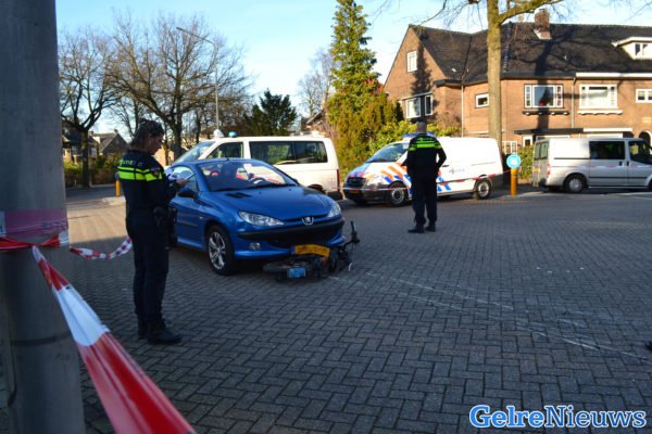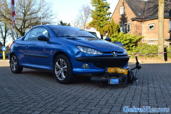 De automobiliste schrok van het ongeval en reed direct achteruit, hierdoor staan er flinke krassen op het wegdek. De brommer zat klem onder de auto, de bestuurder, een man, gelukkig niet,