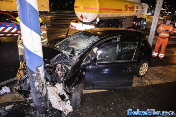 ARNHEM – Op de kruising Batavierenweg met de A325 in Arnhem is maandag laat in de avond een automobilist frontaal tegen een verkeersmast gebotst. Zowel de bestuurder als de bijrijder raakte hierbij gewond.