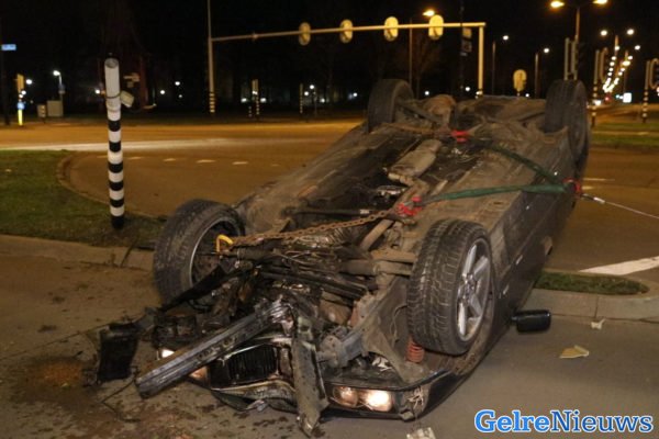 NIJMEGEN – In de nacht van maandag op dinsdag is een automobilist over de kop geslagen ter hoogte van winkelcentrum Dukenburg in Nijmegen.
