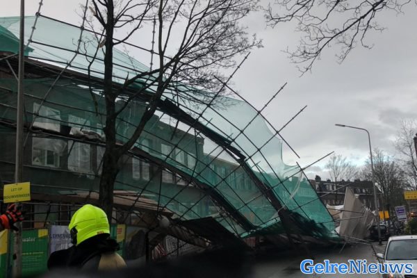 De steiger stond daar in verband met bouwwerkzaamheden aan het winkelcentrumpje waar onder andere de supermarkt Coop in zit. De steiger, die over de hele gevel van het winkelcentrum was opgebouwd, blokkeert inmiddels de hele weg. Er zijn meerdere auto’s beschadigd en de straat ligt bezaaid met steigerplanken.