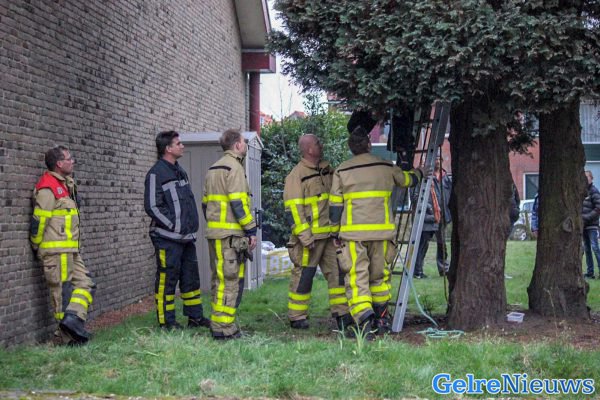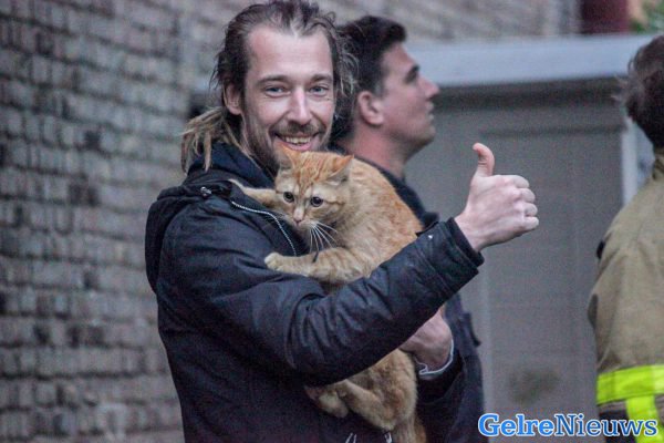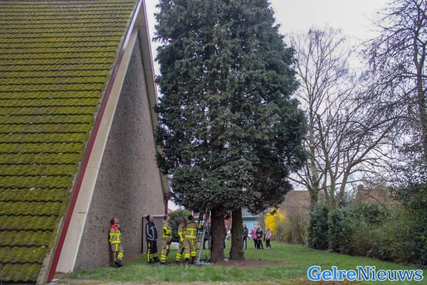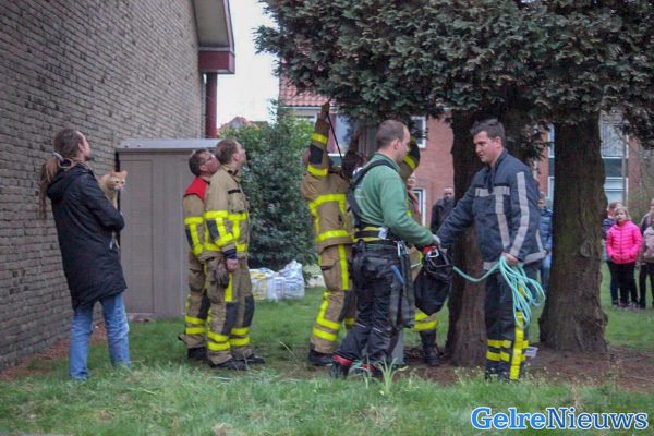 Omstreeks 18.00 uur werd de brandweer gealarmeerd. Ter plaatse bleek een rode kat al zeker twee dagen in een boom vast te zitten. De brandweer gebruikte een grote ladder en speciaal klim gereedschap om in de boom te klimmen.