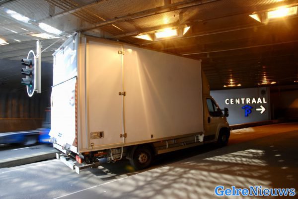 Bestelwagen rijdt zich klem in Willemstunnel in Arnhem