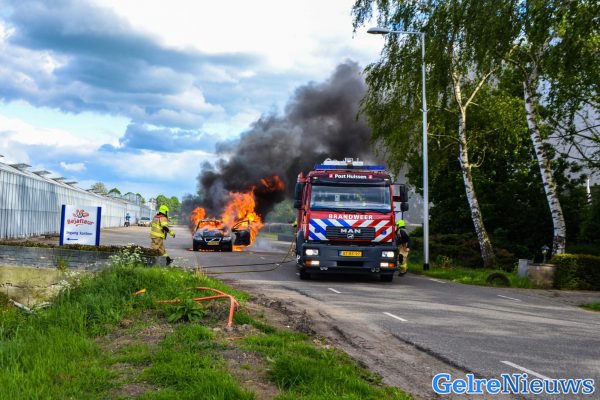 De brandweer heeft de auto geblust, waarna een berger het voertuig heeft afgesleept. Niemand raakte gewond.
