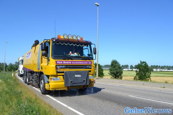 Het verkeer ondervond grote hinder door de reiniging. De rijstrook richting de A15 werd gedeeltelijk afgesloten om de reinigingsdienst de ruimte te geven. De provincie stond naast de weg om bestuurders te waarschuwen door middel van een tekstbord.