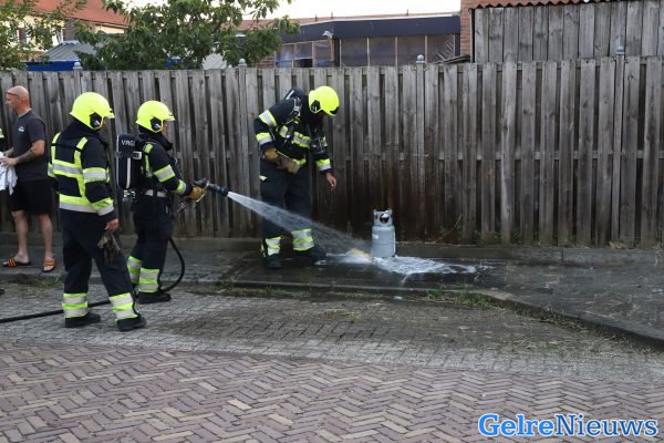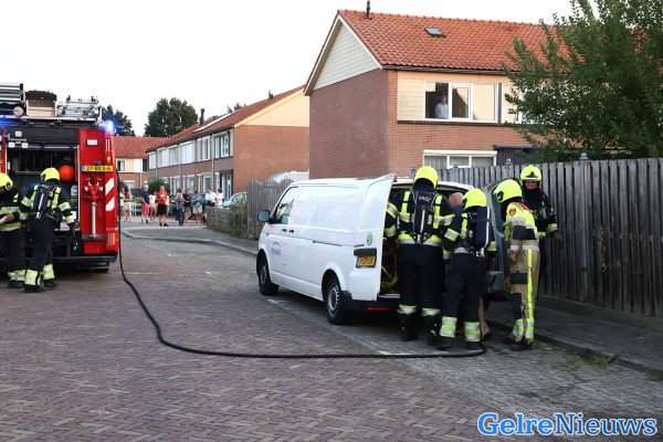 Brandweer koelt gasfles bij brand in bestelbus in Wadenoijen