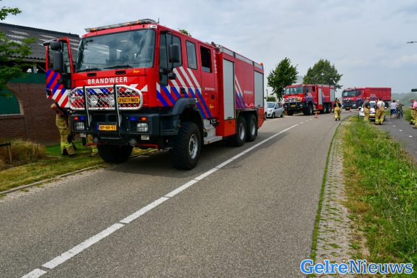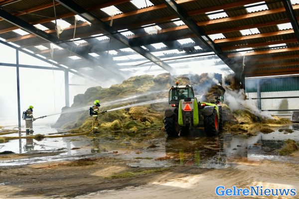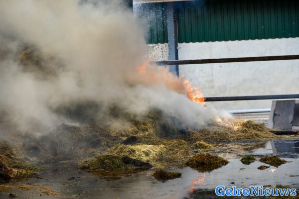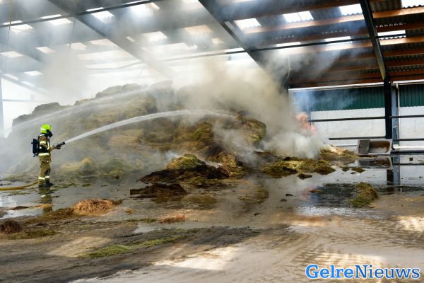 De brand werd rond 13.00 uur gemeld. De brandweer schaalde vrijwel direct op naar ‘grote brand’, waarna er meerdere brandweerwagens waren opgeroepen om te helpen met blussen. Ze zullen nog wel enkele uren bezig zijn voordat het vuur geblust is. Een shovel met een grijper is momenteel bezig om het brandende hooi naar een naastgelegen weiland te brengen, zodat de brandweer daar volledig het vuur kan doven.