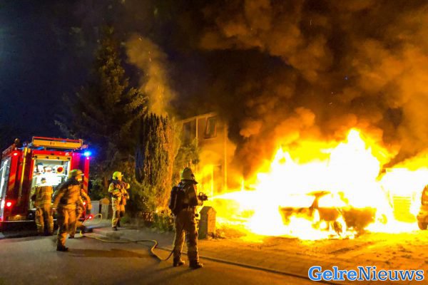 Vanwege de conifeer en de volledig in de brand staande auto was het een flinke vlammen zee. De brandweer kwam met spoed ter plaatse en heeft de brand geblust. Een nog in de woning aanwezige hond is door de brandweer in veiligheid gebracht.