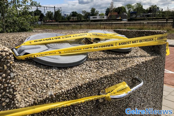 Het wordt nog onderzocht of het daadwerkelijk asbest is. Op het eerste oog lijkt het daar wel op, maar de handhavers durven het nog niet met zekerheid te zeggen.
