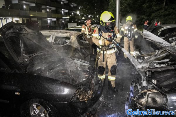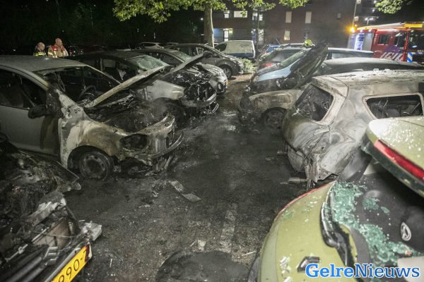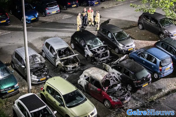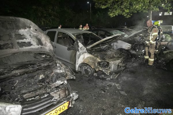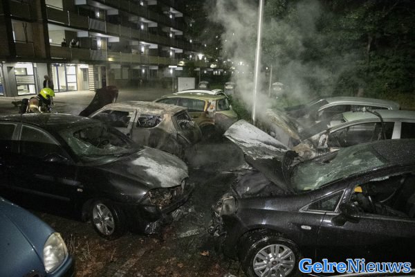 De brand werd rond 3.45 uur ontdekt. Toen de brandweer aankwam was het een flinke vlammenzee. Maar liefst zes auto’s stonden in de brand. Ze wisten het vuur snel onder controle te krijgen, maar de auto’s moeten als verloren worden beschouwd. Twee andere auto’s zijn zwaar beschadigd geraakt. De buurt is flink geschrokken van de brand.