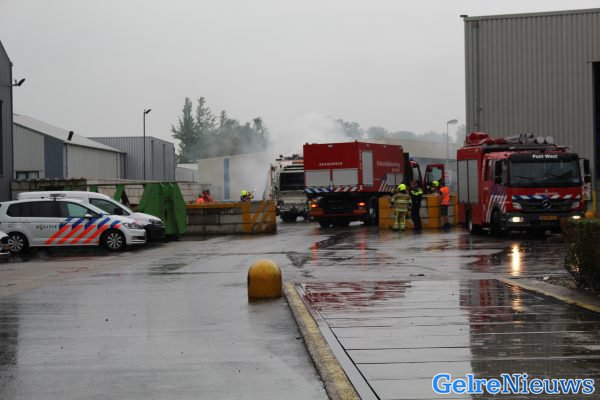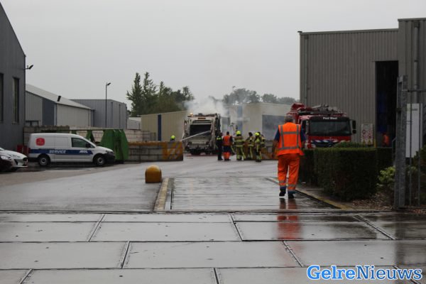 Afval van vuilniswagen in brand op bedrijventerrein in Weurt