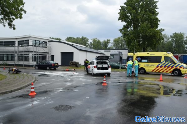 Op de kruising waren een auto en scooter op elkaar gebotst. De vrouwelijke scooterrijder is hierbij ten val gekomen en heeft verwonding aan haar been opgelopen. Ze is voor controle naar het ziekenhuis overgebracht. De scooterrijdster had net een zak gips gehaald dit lag na de aanrijding over de gehele weg.