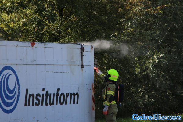 Insituform is een onderneming in rioolrenovatie uit Zoetermeer. Een woordvoerder van de brandweer Gelderland-Midden laat tegenover Omroep Gelderland weten dat er contact is geweest met het bedrijf. ‘We wachten nu op antwoord wat er in de container zit en of de dampen die vrijkomen schadelijk zijn’, zegt laat de woordvoerder weten.