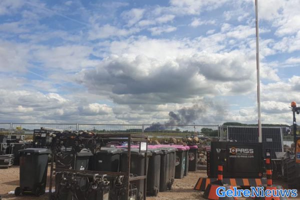 De brand werd rond 12:50 uur gemeld en binnen één minuut opgeschaald tot zeer grote brand. De rookwolken zijn vanuit de opbouw van Appelpop in Tiel te zien. Bewoners in het dorp worden geadviseerd om ramen en deuren te sluiten. ‘Er is asbest bij de brand betrokken’, aldus een woordvoerder.
