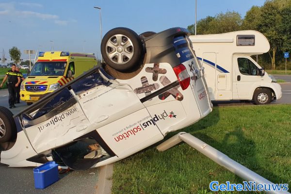 NIJMEGEN – Bij een ongeval ter hoogte van het Mondial College in aan de Meeuwse Akker in Nijmegen is een bestelbusje omgeslagen. De bestuurder raakte daarbij gewond.