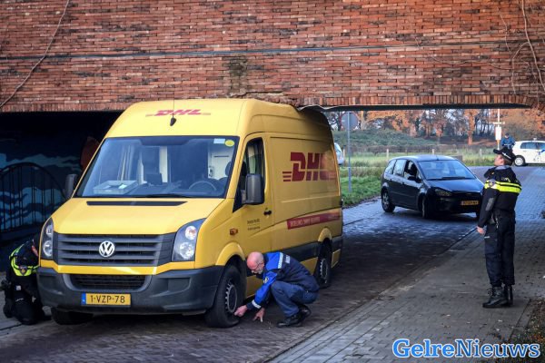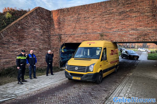 DOESBURG – Een pakketbezorger van DHL is maandagmiddag vast komen te zitten onder het viaduct aan de Panovenweg in Doesburg.