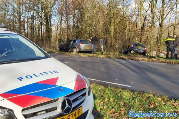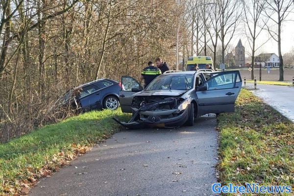 Het ongeluk gebeurde even na 11:00 uur. Door onbekende oorzaak kwamen de twee auto’s met elkaar in botsing. Één van de auto’s kwam tegen een boom langs de berm tot stilstand.